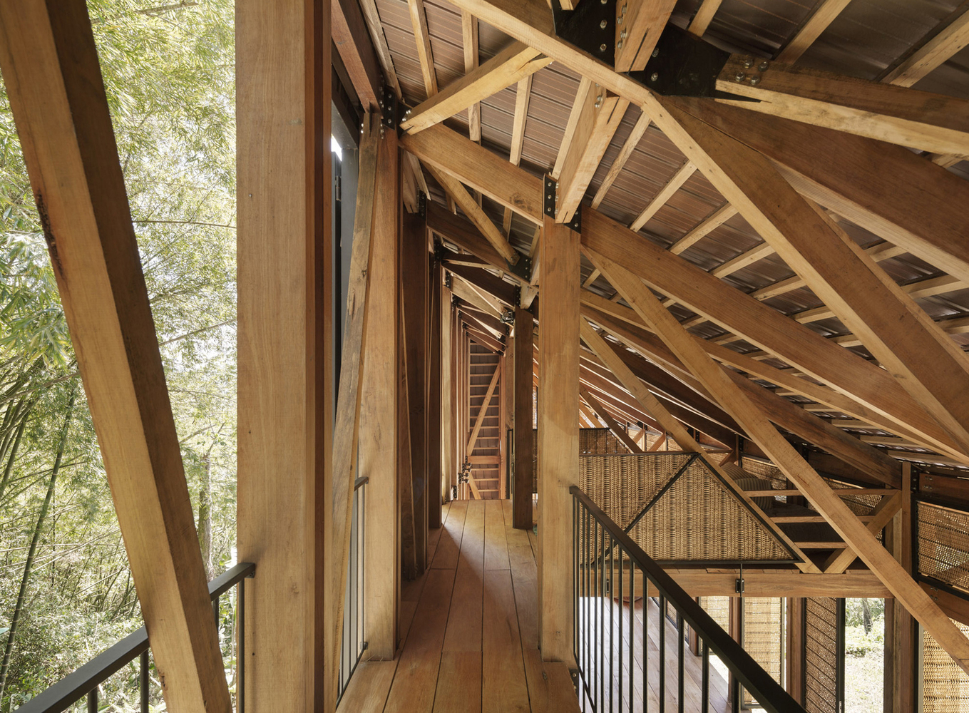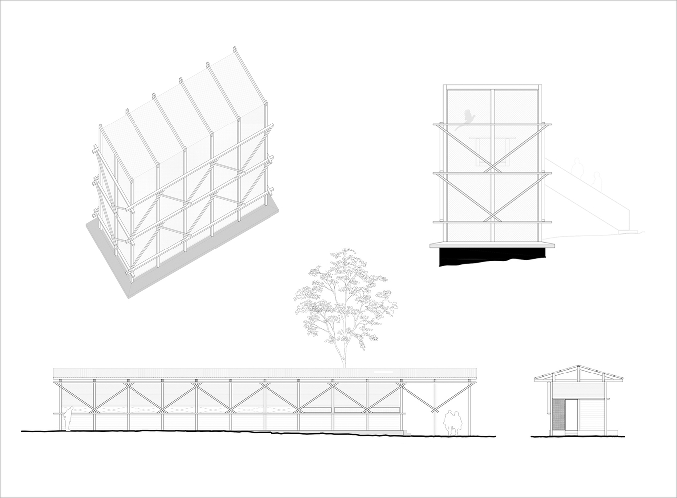 “CasaTejida設(shè)計(jì)和建造的方法受參數(shù)化生產(chǎn)和開源系統(tǒng)的啟發(fā)和幫助,變得更易于理解。這個(gè)項(xiàng)目承諾去探尋預(yù)制的方式和更高標(biāo)準(zhǔn)的手工藝,在此工藝下,會(huì)生產(chǎn)出像拼圖碎片一樣的木材和金屬件,以便在場(chǎng)地快速的安裝。”