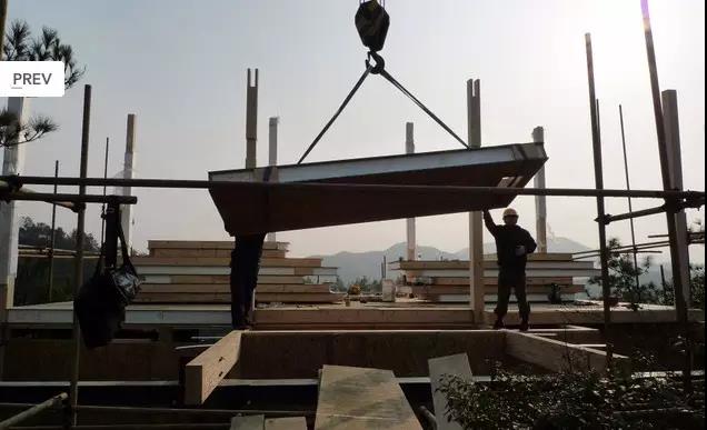 該項目的施工采用了全預制化方法,所有木質構件如墻板,樓板都是在工廠做好送到現場安裝。