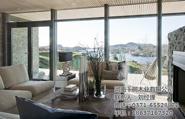 河南木別墅的尺寸和視野,是我們喜歡的一個(gè)焦點(diǎn)。特別對(duì)于度假木屋,在室內(nèi)平靜的與戶外自然景觀對(duì)話,是大窗戶的重要意義。大窗戶在木屋中,提供最佳漂亮的風(fēng)格,當(dāng)然對(duì)于木屋設(shè)計(jì)也是至關(guān)重要,如何漂亮美觀還要節(jié)能。如:窗戶與墻壁空間的比例、窗戶的形狀和尺寸及屋頂?shù)呐渲枚际窃O(shè)計(jì)的考慮因素,方向葉是很重要的,可能會(huì)建議包括深檐和傾斜的窗戶方向以便在減輕陽光。