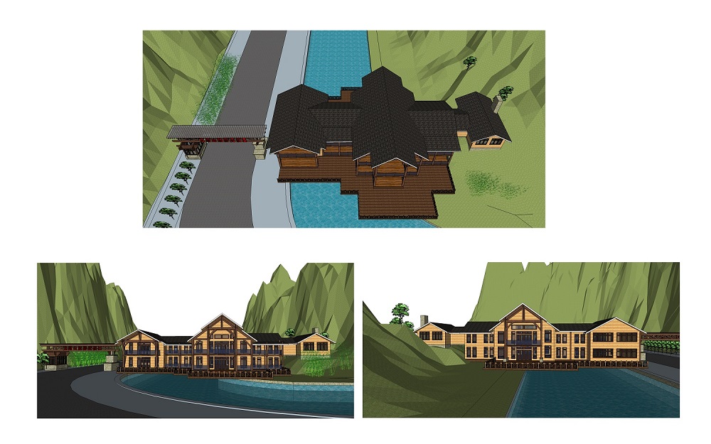 接待中心位于該景區(qū)大門口,總建筑面積1170㎡,分為上下兩層,建筑部分坐落在河面跨度21米的山間河道上方,設(shè)計(jì)師克服了跨河橋面的撓度問題使得項(xiàng)目施工最終順利完成。本接待中心木屋的主體結(jié)構(gòu)采用的是美國(guó)花旗松膠合木,實(shí)現(xiàn)了大跨度的結(jié)構(gòu)形式,墻體結(jié)構(gòu)采用了標(biāo)準(zhǔn)的2*4工法施工,外墻掛板采用了紅雪松無(wú)節(jié)材。室內(nèi)設(shè)計(jì)有中央空調(diào),煙霧報(bào)警及噴淋系統(tǒng)。功能布局有接待廳,辦公室、母嬰室、民俗展示區(qū)、公共衛(wèi)生間及會(huì)議室。通過(guò)先期的設(shè)計(jì),在保證項(xiàng)目的功能性及節(jié)能效率上發(fā)揮最大作用,地面使用率達(dá)到最高且建造速度快,安裝時(shí)不受氣候條件影響,同時(shí)最大限度的減少現(xiàn)場(chǎng)施工量,縮短施工周期,項(xiàng)目完成用時(shí)90個(gè)工作日,該項(xiàng)目自2017年4月交付使用以后受到甲方及游客的一致好評(píng)。
