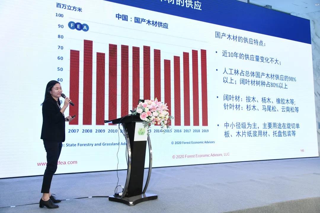 △ 美國林業(yè)經(jīng)濟(jì)顧問公司中國運營經(jīng)理郭丹女士發(fā)表主題演講