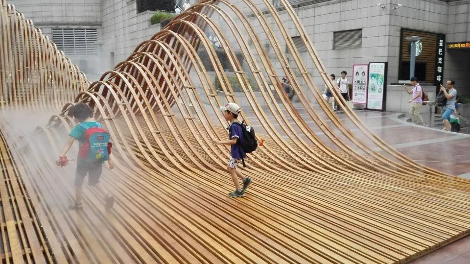 “也許人們會(huì)認(rèn)為石頭是冰冷的、完全是無機(jī)物的狀態(tài),可我認(rèn)為石頭是會(huì)說話的”,設(shè)計(jì)師王剛用竹鋼條材的相互搭接,在墻面上制作了一個(gè)又一個(gè)立體的石塊~