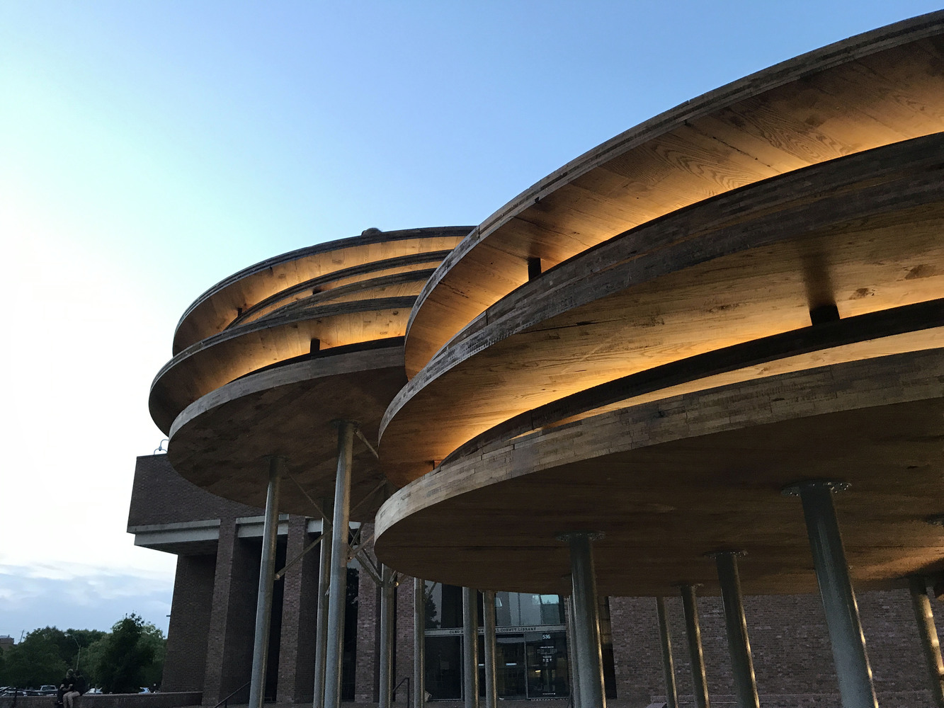 該設(shè)施為社區(qū)提供了一個(gè)不管從字面上還是隱喻上來(lái)看,都聚集,交流并且振奮人心的地方。從位于東半部的摩爾雕塑周邊開(kāi)始,大型木材轉(zhuǎn)盤(pán)組成了一系列向西上升的底座。